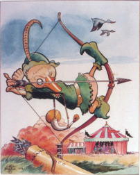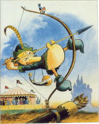 Barks created 4 watercolor paintings of Robin Hood, all of them depicting the famous archers' contest at Nottingham.